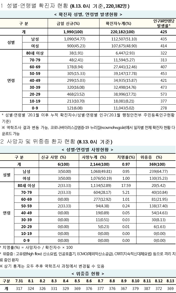 | 코로나19 집계(2021.8.13. 0시기준)/:/ 1990명 (0) | 2021.08.13 |