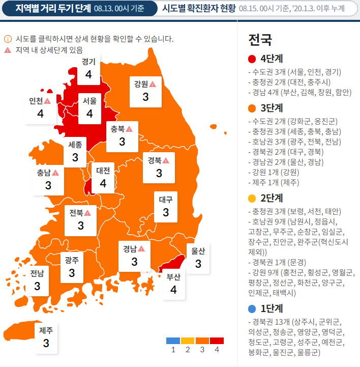 | 코로나19 거리두기 단계별 기준 및 방역수칙 (2021.8.9~) (0) | 2021.08.16 |