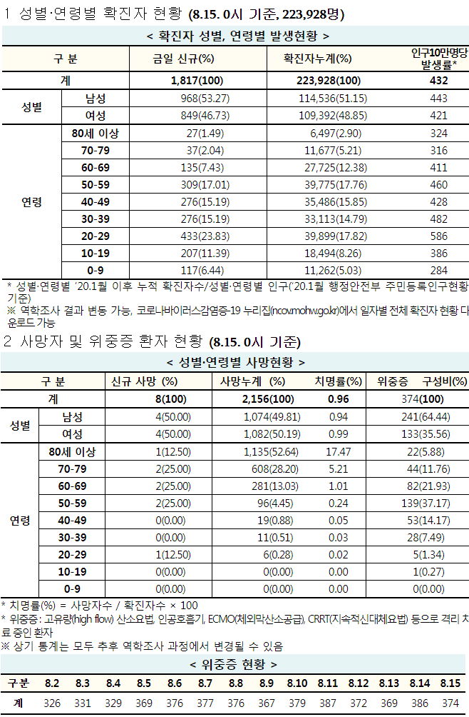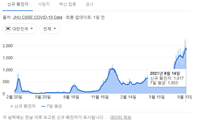 코로나19 집계(2021.8.15. 0시기준)/:/ 1817명 본문