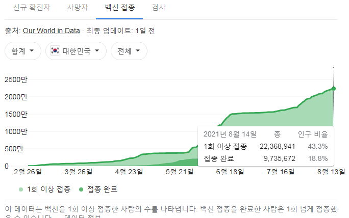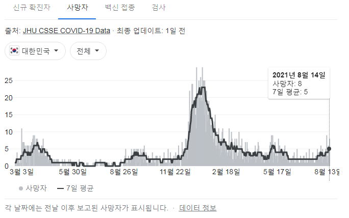 아래 자료의 출처는 정부 사이트, 네이버, 구글입니다. 구글그래프와 복지부사이트는 조금 다를 수 있습니다.