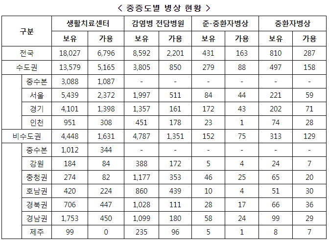 중부권(대전 세종 충남북 전북)2은 167명 (지역인구 735.9만 명/ 면적 2.47만km^2)3 4