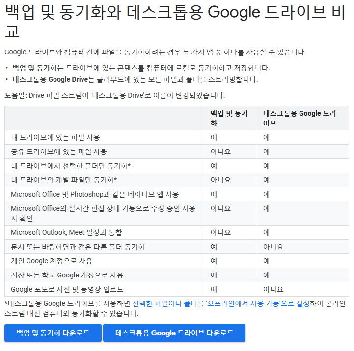 백업 및 동기화와 데스크톱용 Google 드라이브 비교 - Google 드라이브 고객센터