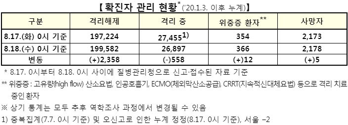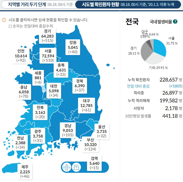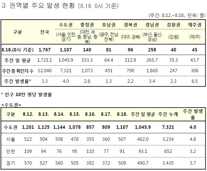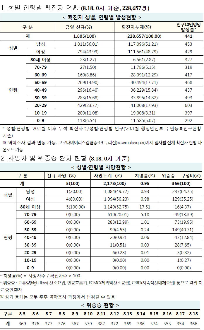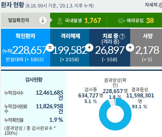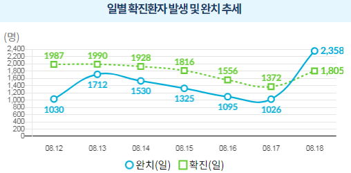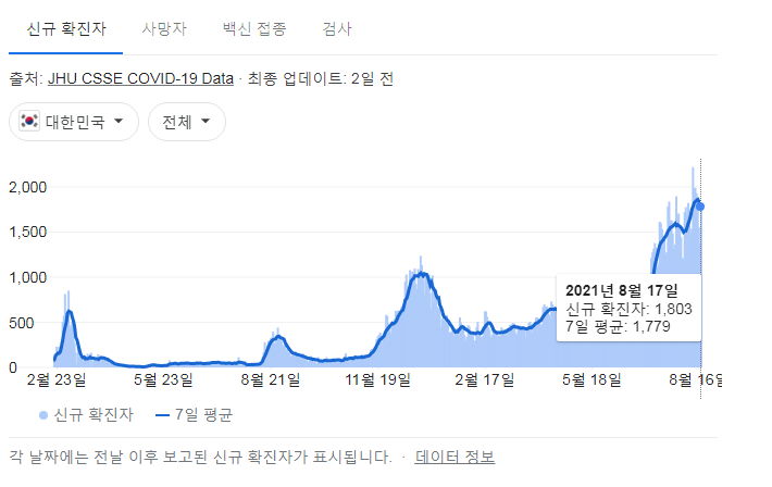 코로나19 집계(2021.8.18. 0시기준)/:/ 1805명/:/ 부스터샷 관련기사 본문