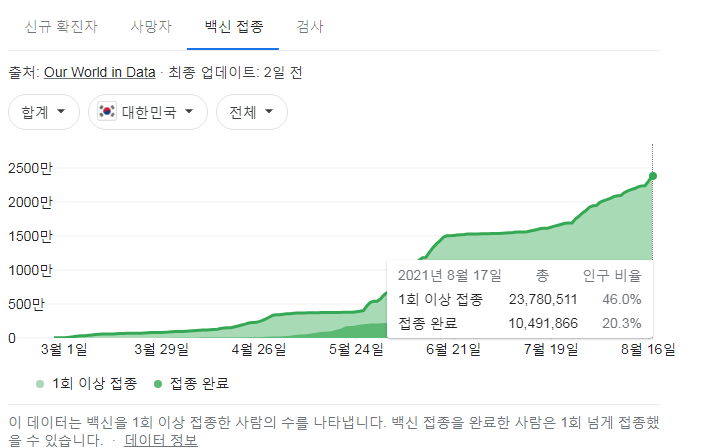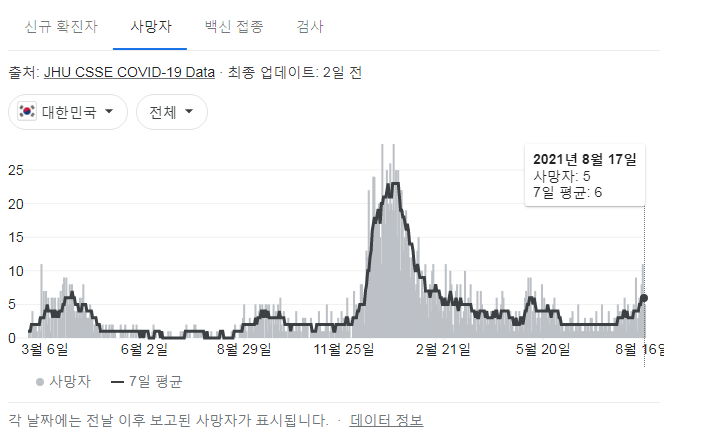 아래 자료의 출처는 정부 사이트, 네이버, 구글입니다. 구글그래프와 복지부사이트는 조금 다를 수 있습니다.