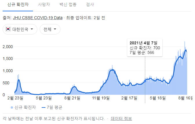 | 코로나19 집계(2021.8.16. 0시기준)/:/ 1553명/:/ 상세통계가 나오는 날 (0) | 2021.08.16 |