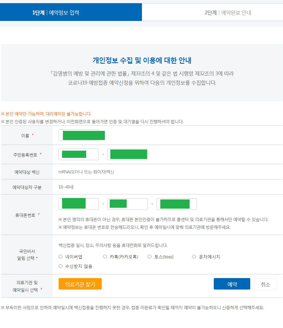 코로나19 예방접종 사전예약 시스템