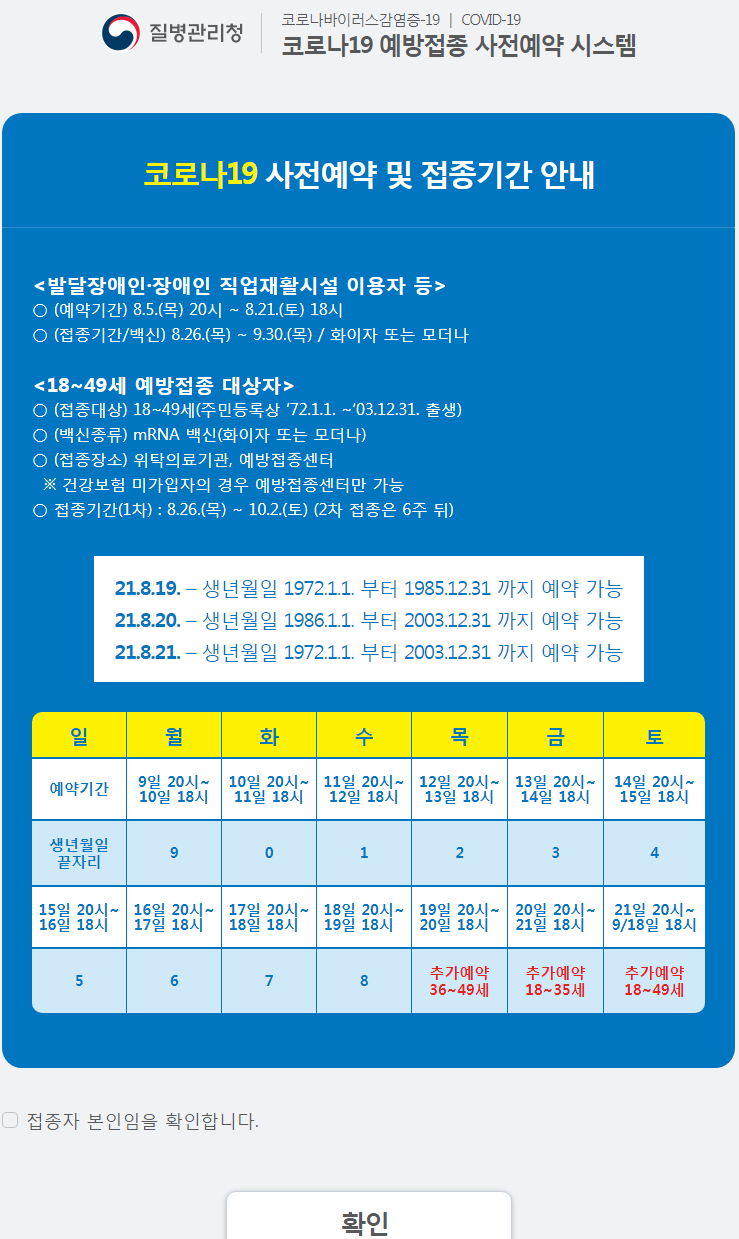 코로나19 예방접종 사전예약 기록 (18~49세) 본문