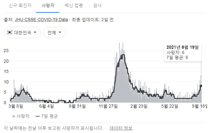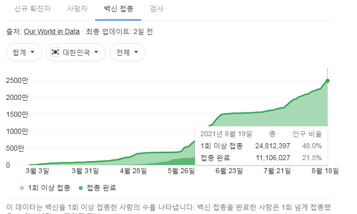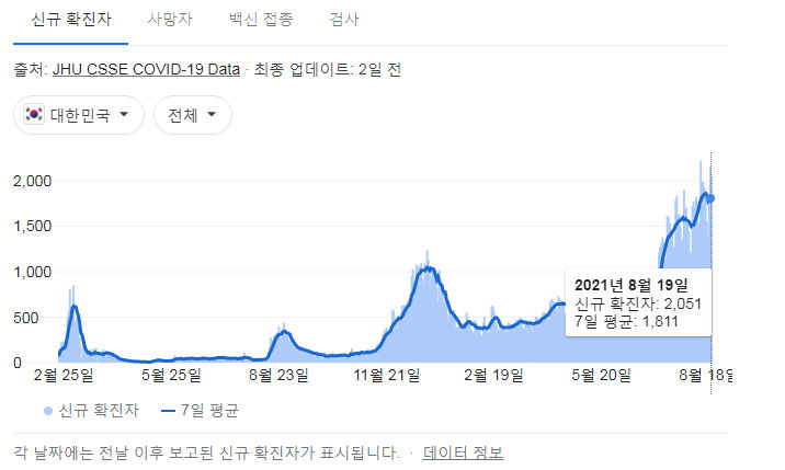 아래 자료의 출처는 정부 사이트, 네이버, 구글입니다. 구글그래프와 복지부사이트는 조금 다를 수 있습니다.