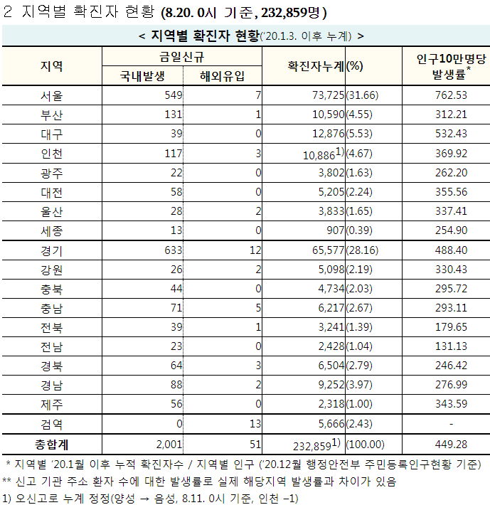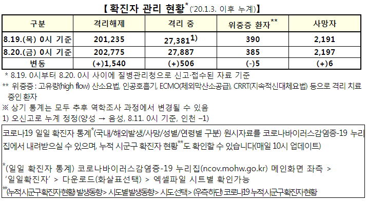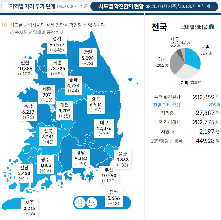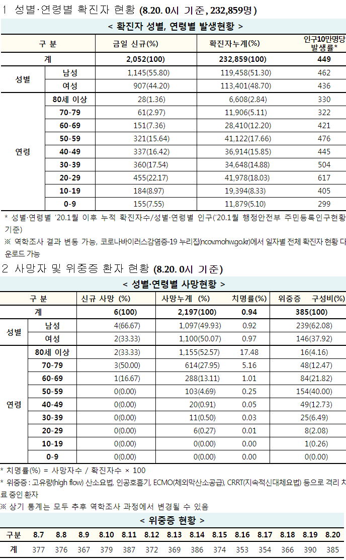 코로나19 집계(2021.8.20. 0시기준)/:/ 2052명 본문