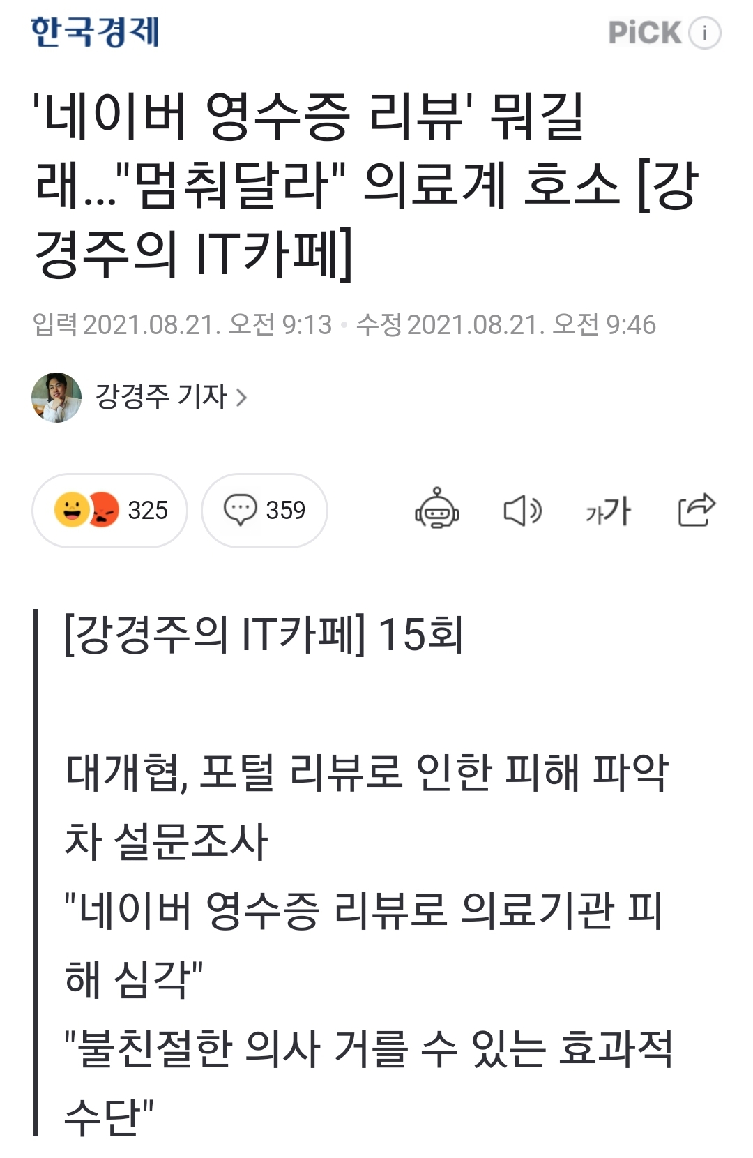 지역 소상공인이 하는 불평은 네이버가 들은 척도 안 했겠지만 의사협회(대한개원의협의회)가 상대니 신문기사가 되는군요.