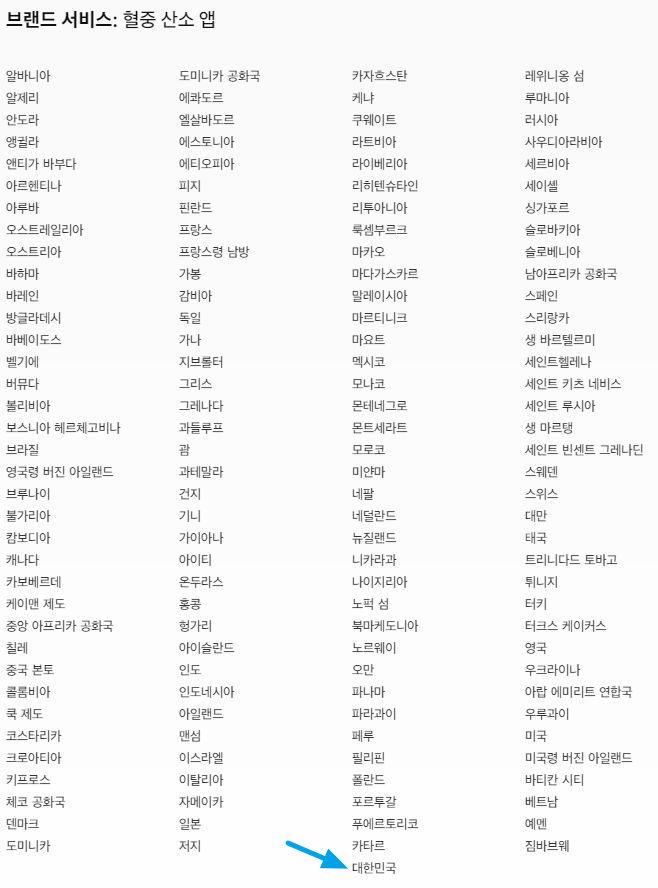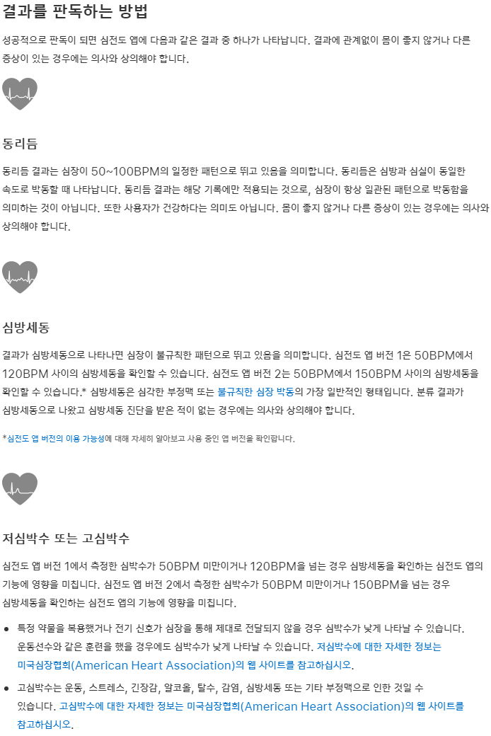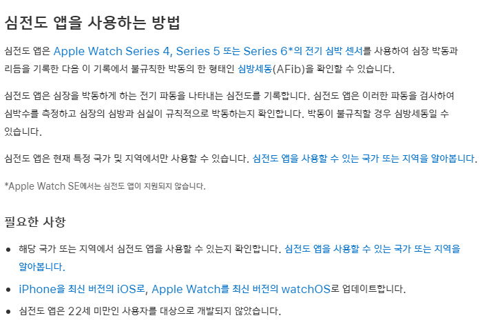 심전도, 혈중 산소 농도, 불규칙한 박동 알림 앱은 현재 대한민국에서도 사용할 수 있습니다.