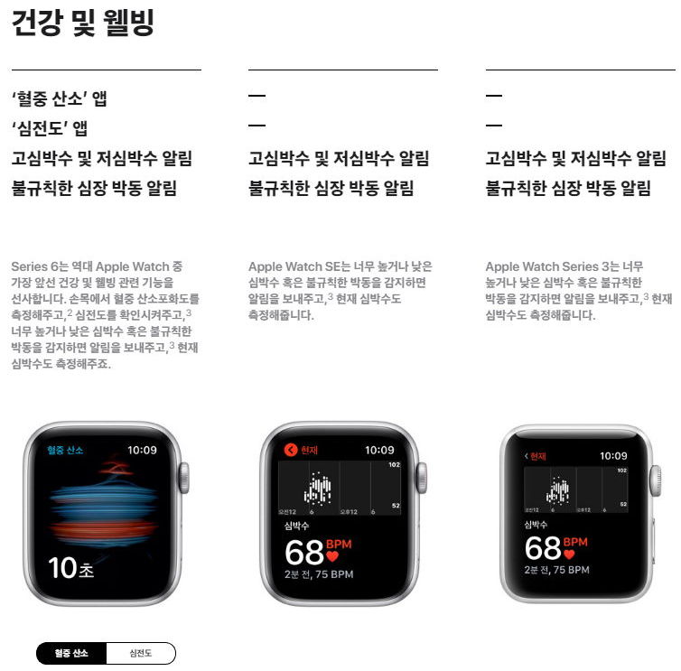 시리즈 3과 SE는 혈중산소농도와 심전도 두 가지 다 측정하지 못합니다.