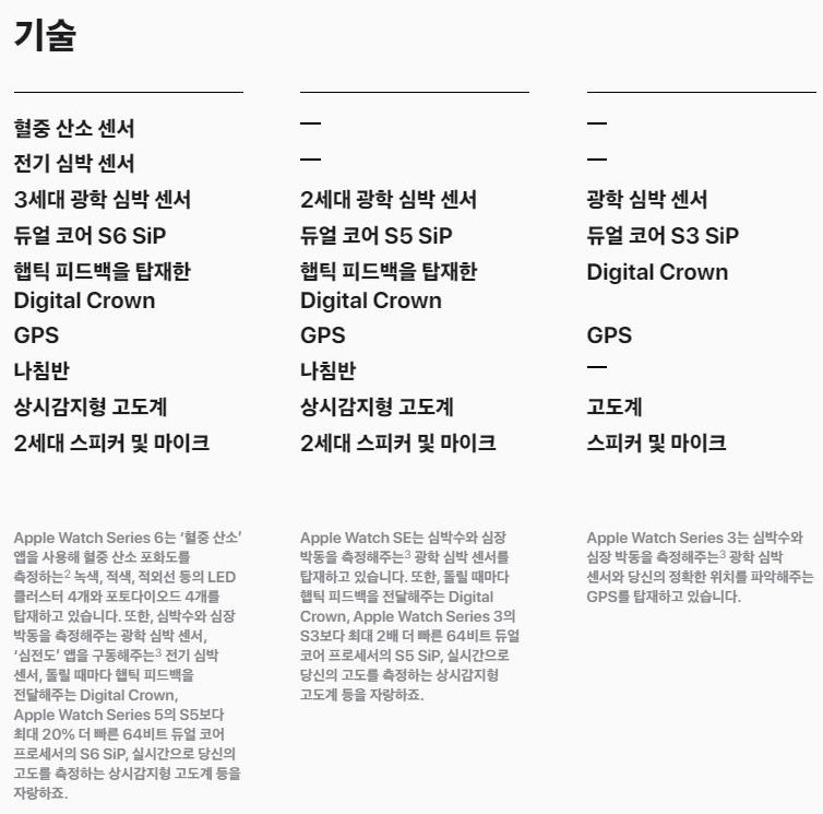 Apple Watch 3, SE, 6 비교