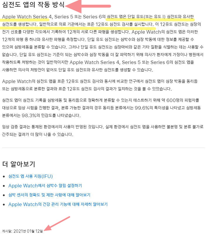 이상의 내용은 모두 애플워치 제조사인 apple.com 에 게시된 것입니다.