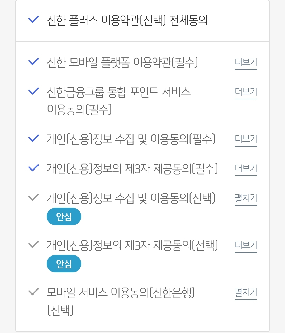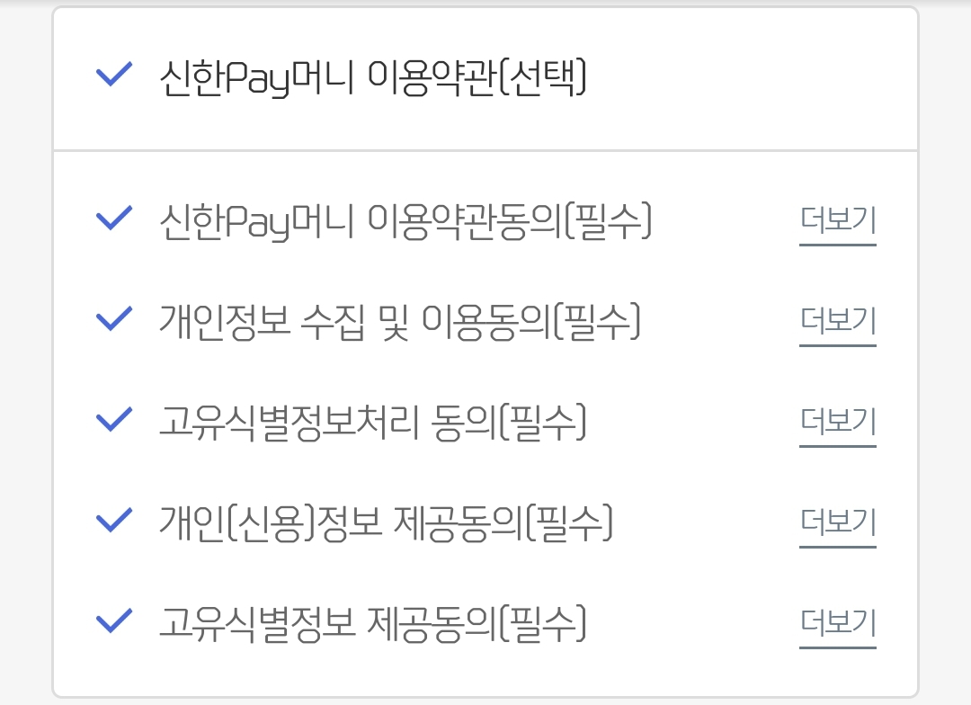 신한 페이판앱, 처음 사용할 때 지나가는 필수/선택약관 본문