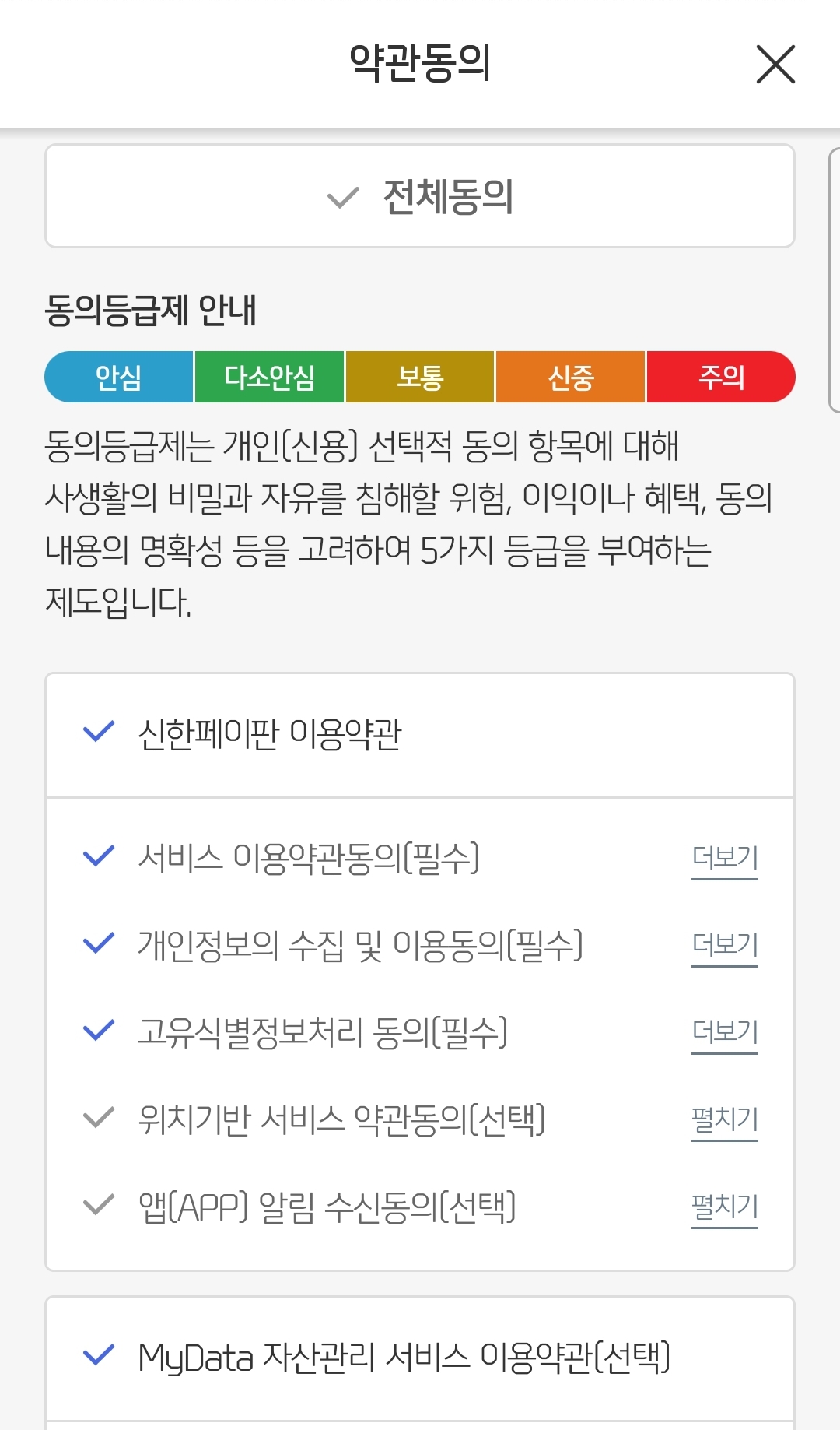 신한 페이판앱, 처음 사용할 때 지나가는 필수/선택약관 본문