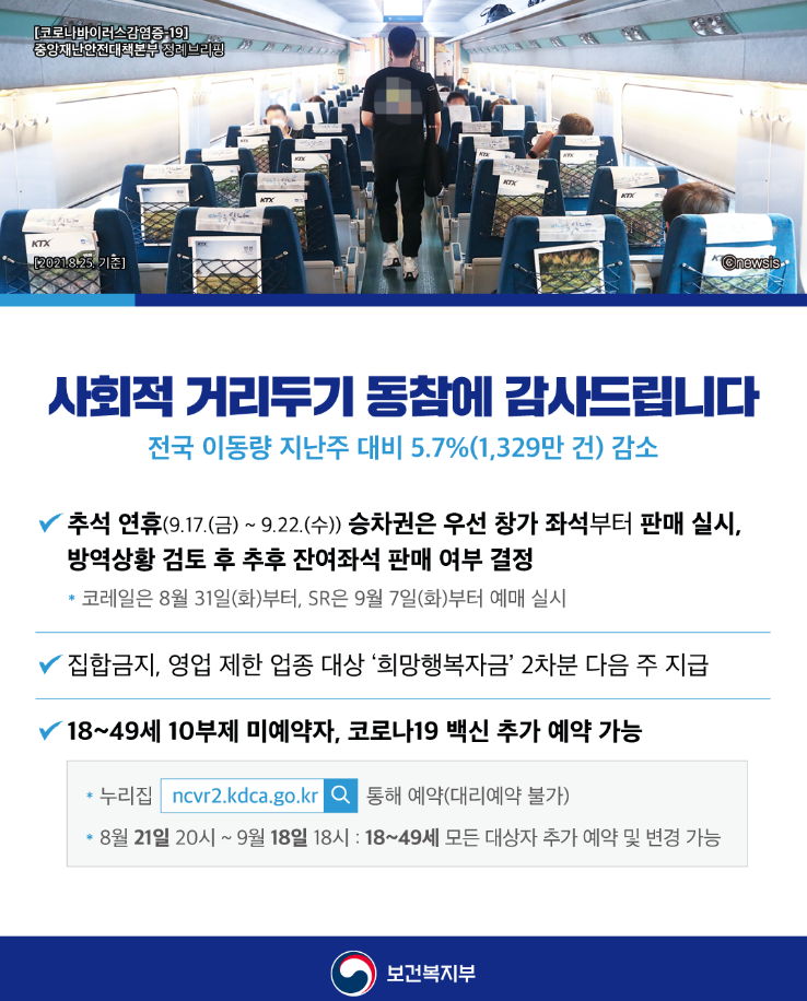 정부&코레일, 추석명절 열차예약은 일단 창가좌석표만, 유행봐가며 복도측좌석표도 발매할지 결정하기로 본문