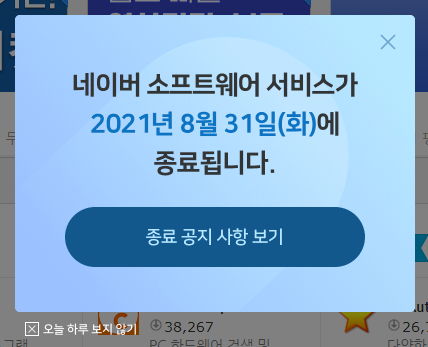| 네이버 소프트웨어 자료실/:/ 2021.8.31 운영 종료 공지 (3) | 2021.06.17 |