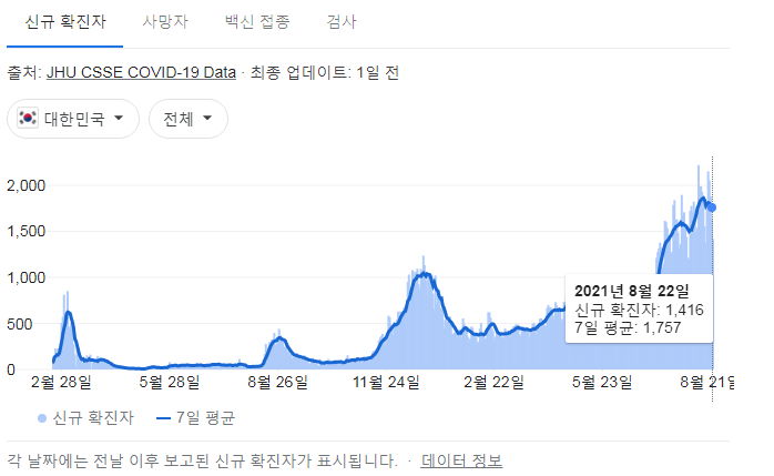 | 코로나19 집계(2021.8.24. 0시기준)/:/ 1509명/:/ 바이러스 발생 현황 및 백신효과분석 등 (0) | 2021.08.25 |