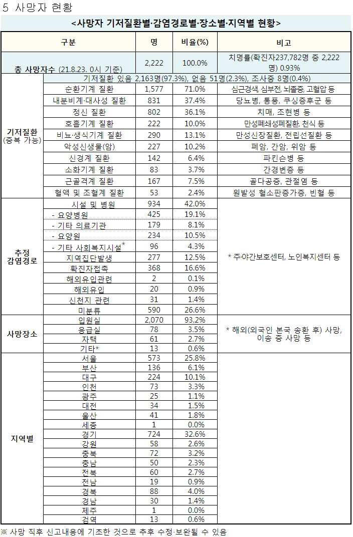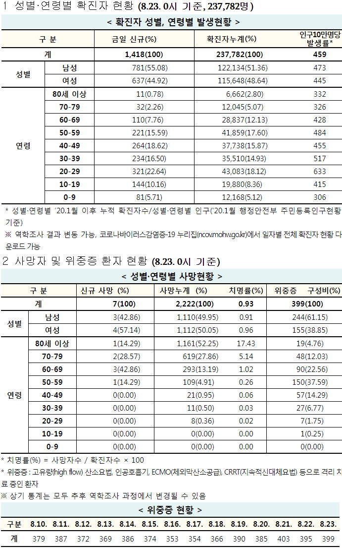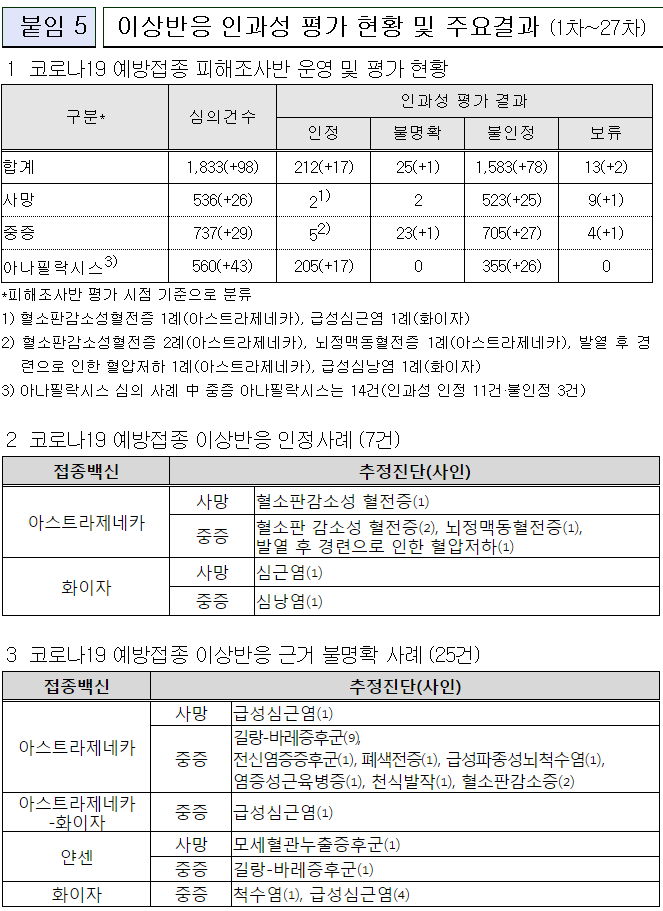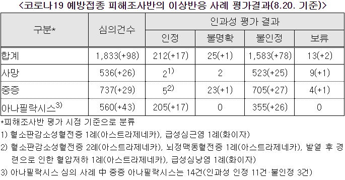 코로나19 집계(2021.8.23. 0시기준)/:/ 1418명/:/ 이상반응(부작용)인과성 평가 심의결과 등 본문