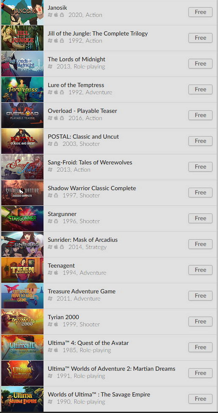 (GOG 무료게임) Free Game Collection 고전게임모음 본문