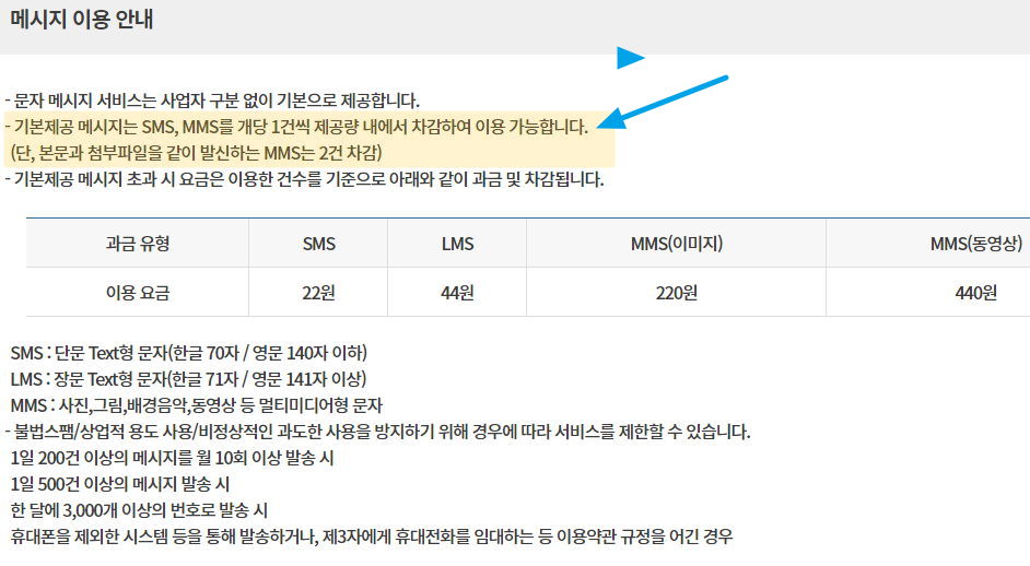 통화 500분, 문자 500건(SMS, LMS는 1건, MMS는 2건으로 간주하는 듯)