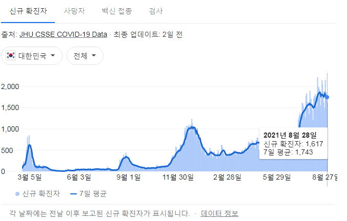 | 코로나19 집계(2021.8.28. 0시기준)/:/ 1793명 ...... (0) | 2021.08.28 |
