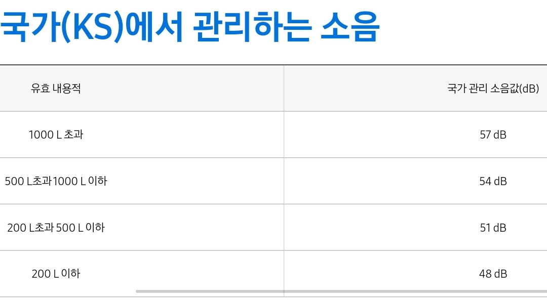 1. 냉장고 용량별로 가동시 최대소음 dB 기준이 있고 그걸 넘을 때