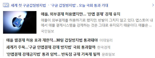"인앱결제 강제금지법"(전기통신사업법 개정안)은 원래 어제 국회 본회의에서 처리될 예정이었지만, 언론중재법안이 큰 물의를 일으킨 데다 청와대까지 배틀에 참전(..)했다는 소식이 나오면서, 덩달아 이것도 옆으로 치워버린 상태.. 오늘 회의를 열어 일괄 처리할 모양이라고 합니다.