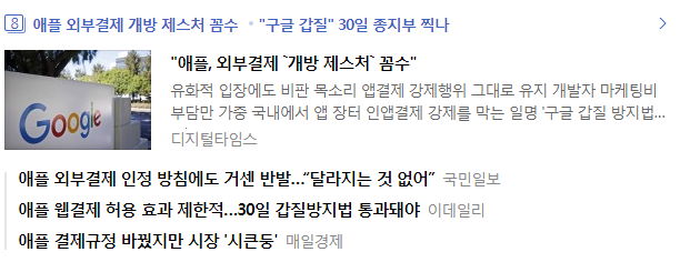 ㅡ (자체시스템을 운영하지 못하는) 중소개발자는 인앱결제강제보다는 기준이하 매출액에 대해 수수료율을 내려주는 것과 지원프로그램에 끌려 합의했을 것.