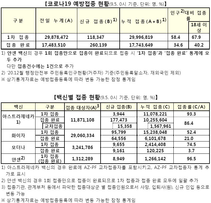 질병관리청, 예방접종 1차기준 3천만명 보도자료 (2021.9.5.)