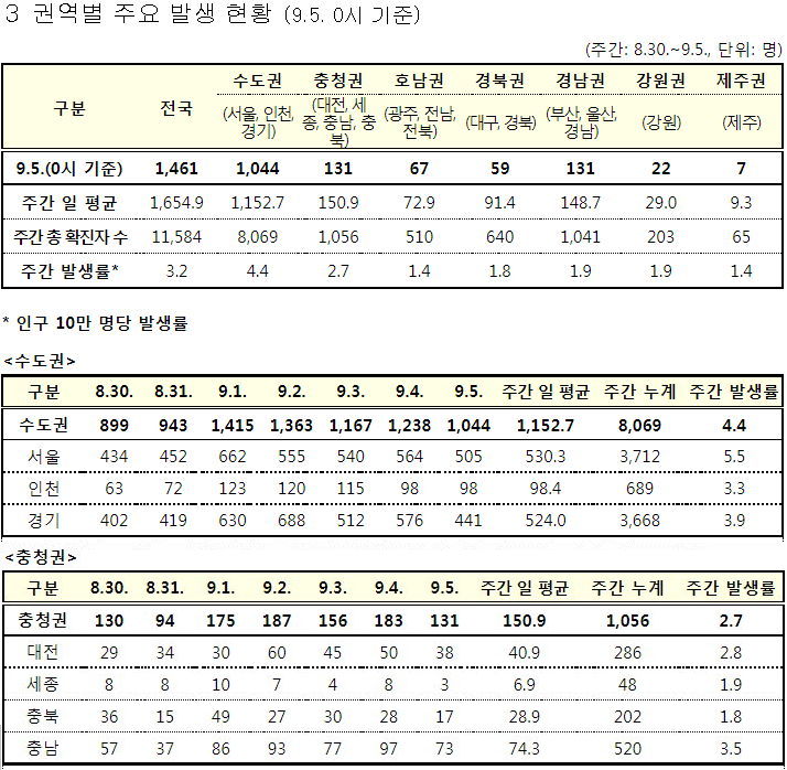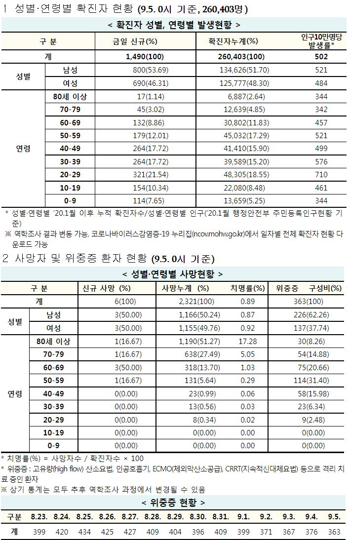 코로나19 집계(2021.9.5. 0시기준)/:/ 1490명 /:/ 질병관리청, 예방접종 1차기준 3천만명+ 보도자료 본문