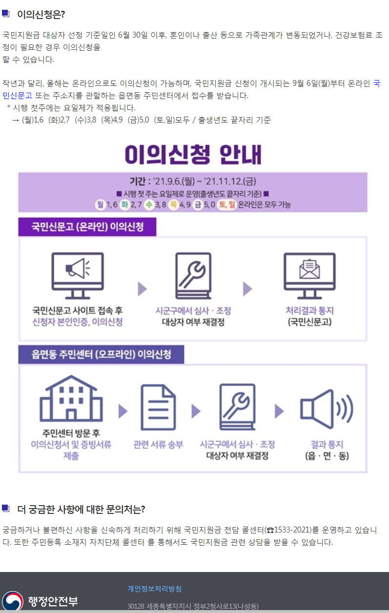 행정안전부 2021년 국민지원금 안내