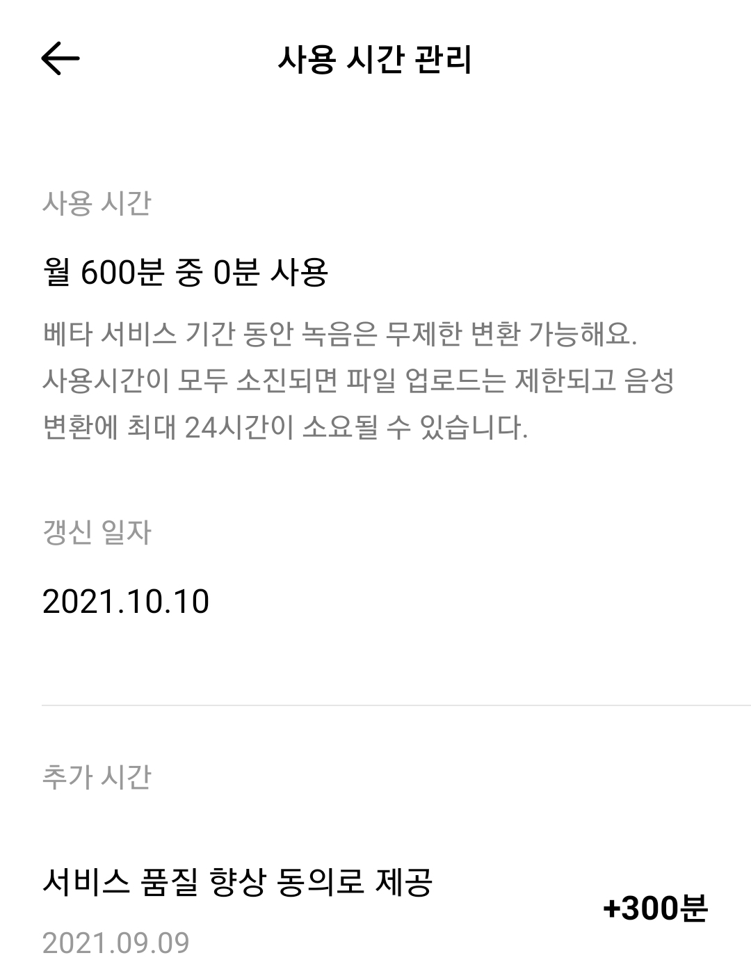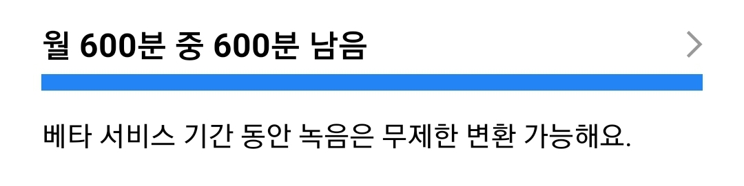 선택약관 중 서비스 품질향상~ 동의는 앱 실행 후 설정화면에 들어가도 보입니다. 기본 월 300분에 이거 동의해서 주는 300분까지 월 600분어치를 처리할 수 있는 듯.