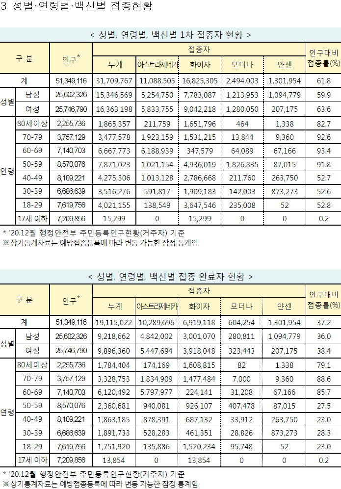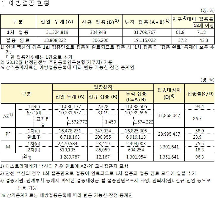 18세 이상 인구대비 1차접종 70%+, 접종완료 40%+