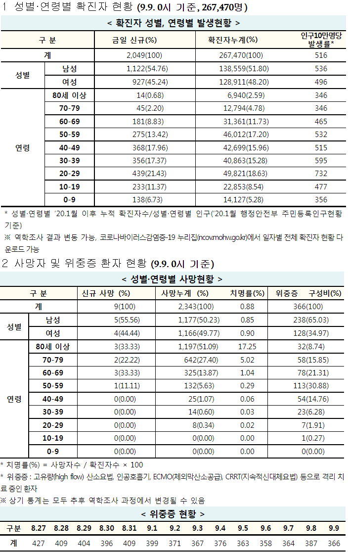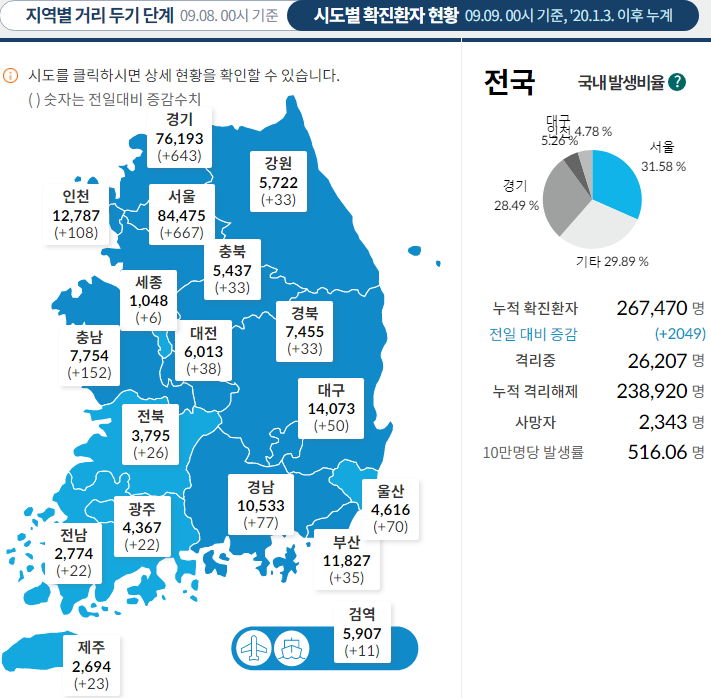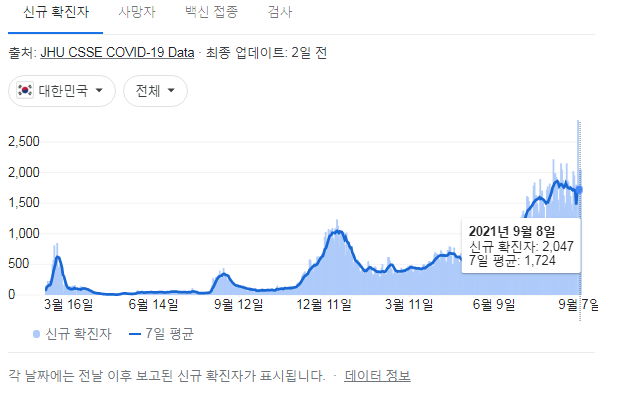 코로나19 집계(2021.9.9. 0시기준)/:/ 2049명 ☆ 본문