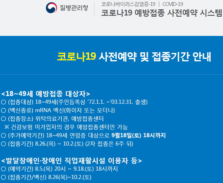 18~49세 사전예약은 9월 18일까지 계속 접수받습니다. 지금까지 예약안했더라도 아직 할 수 있습니다.