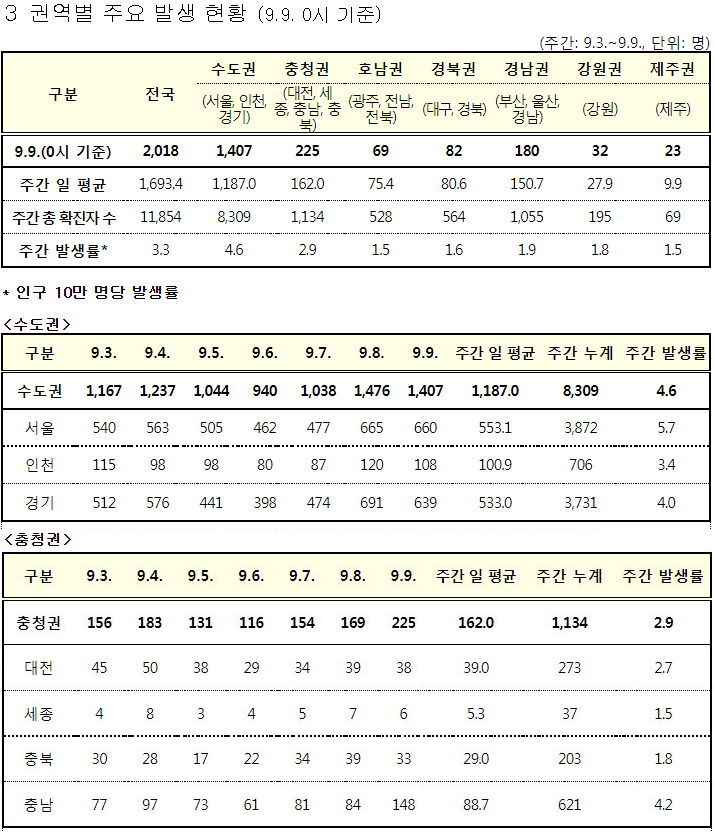 수도권(서울 경기 인천)은 1418명 (지역인구 2592.6만 명/ 면적 1.18만km^2 )