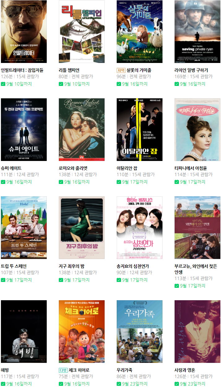 | (네이버 시리즈온 무료영화) 라이언일병 구하기, 로미오와 줄리엣 등 (0) | 2021.09.03 |