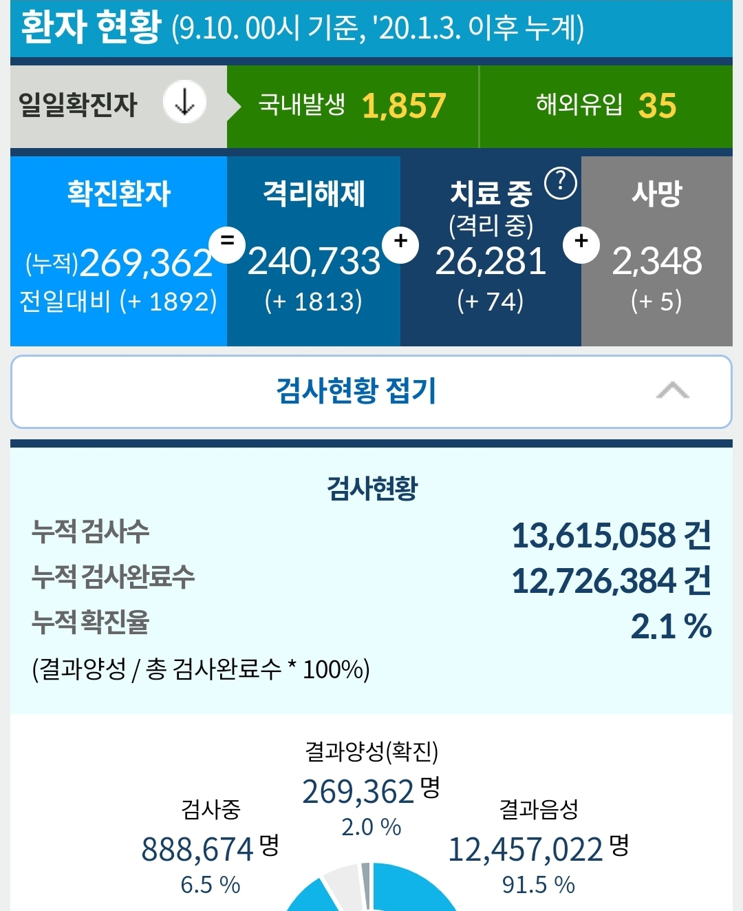 코로나19 집계(2021.9.10. 0시기준)/:/ 1892명 /:/ 위드코로나 무증상확진자 재택치료 확대 본문