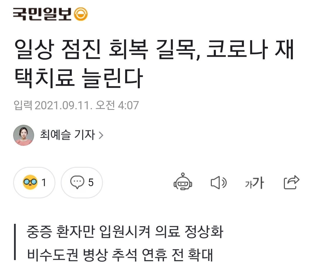 2. 위드코로나 시작 조치로서 정부는, 코로나19치료용 위중중환자병실을 늘리려 한다는 데 이어, 일반병실과 중환자실 사이 병실을 추가로 만들겠다고1. 그리고 선별적인 코로나19 확진자 재가치료를 이야기했습니다.