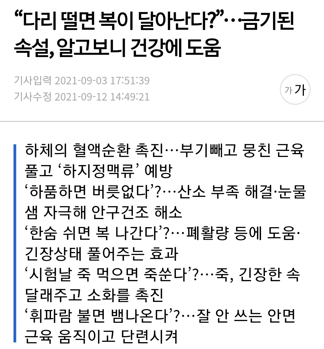 다리떨면 건강이 온다?! 속설과 다른 건강팁 본문