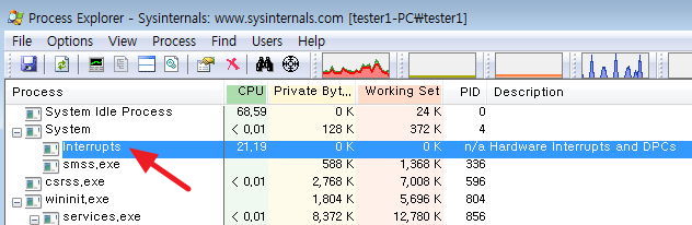 idle상태에서 CPU 점유율이 이상하게 높은 경우: interrupts : Hardware interrupts and DPCs /:/ LatencyMon 본문