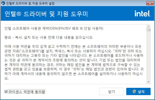 지금 깔려 있는 인텔 드라이버를 수동제거하고