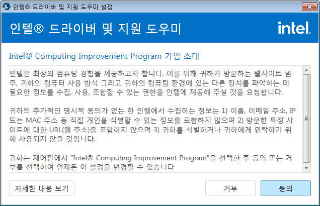 자기 컴퓨터에서 인텔 그래픽 드라이버를 업데이트하려면 확인하는 프로그램을 깔라고 요구한데, 안 깔려있으면 설치페이지로 가고,
