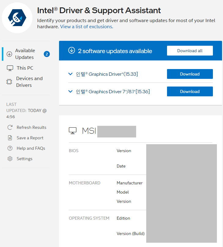인텔 내장그래픽 업데이트 (using Intel Driver & Support Assistant) 본문