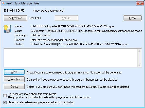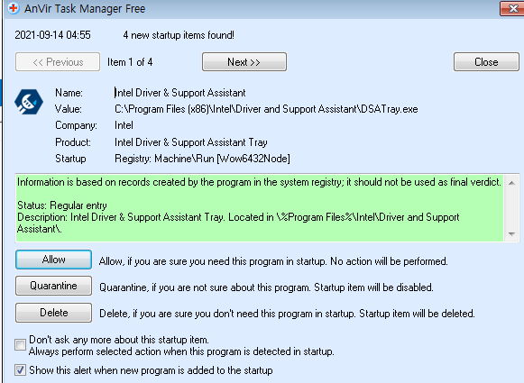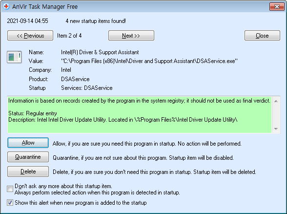 시작프로그램 및 권한을 요구하는 프로그램이 몇 가지 더 생겨서 알림이 뜹니다.