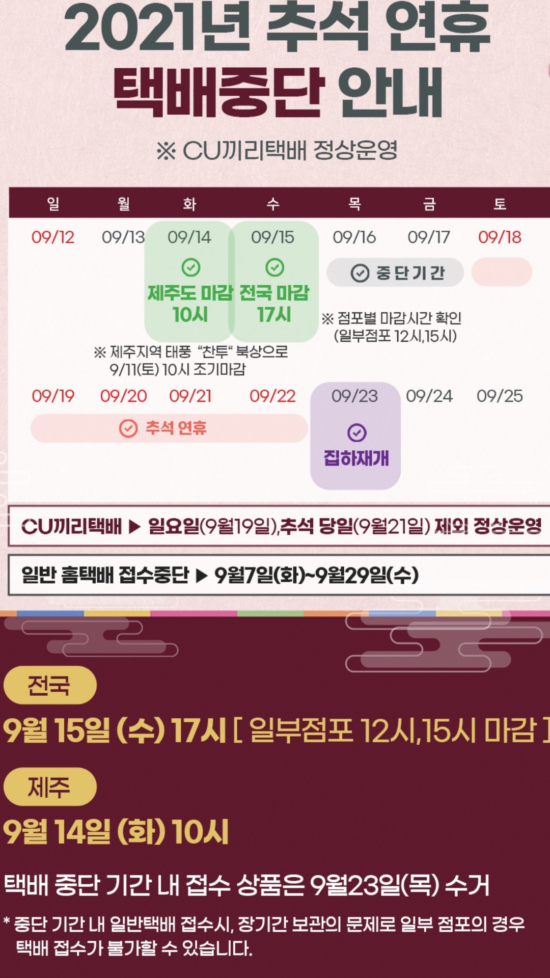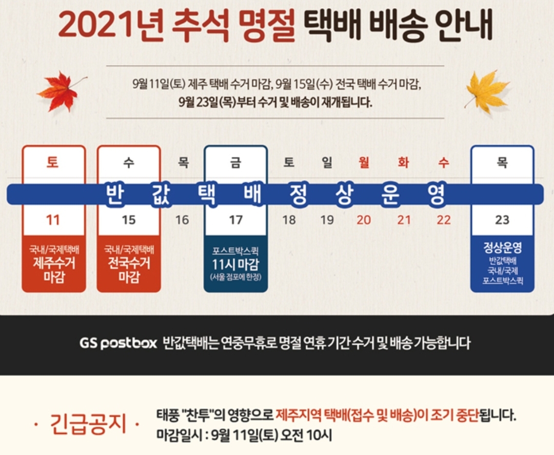 2021 추석연휴 GS25, CU 편의점택배 수거마감 안내/:/ 우체국 마감 본문