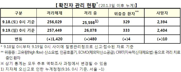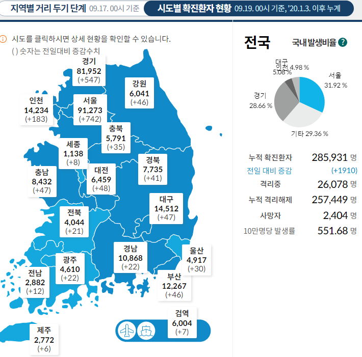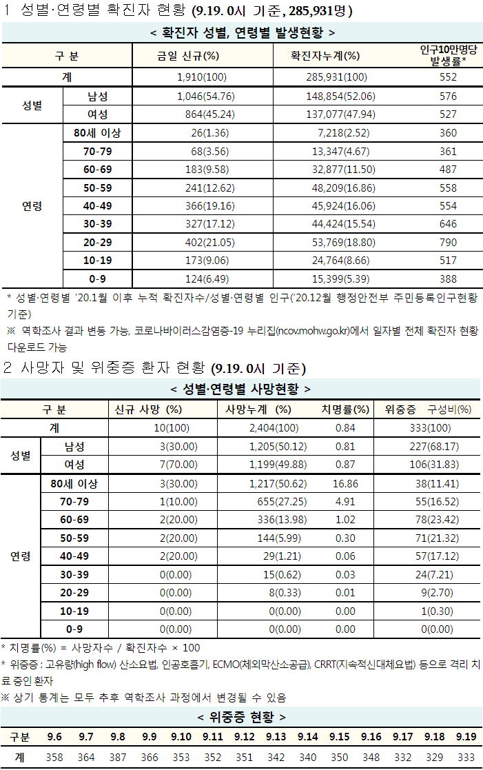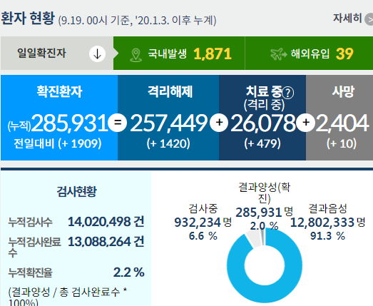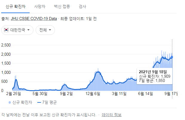 코로나19 집계(2021.9.19. 0시기준)/:/ 1909명 본문