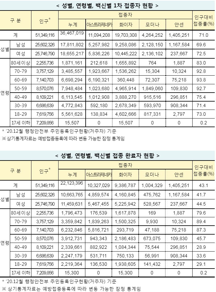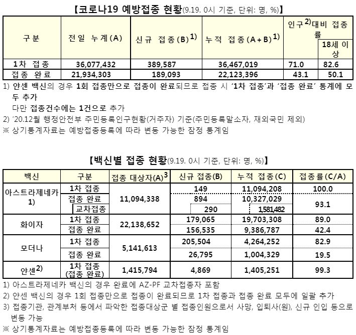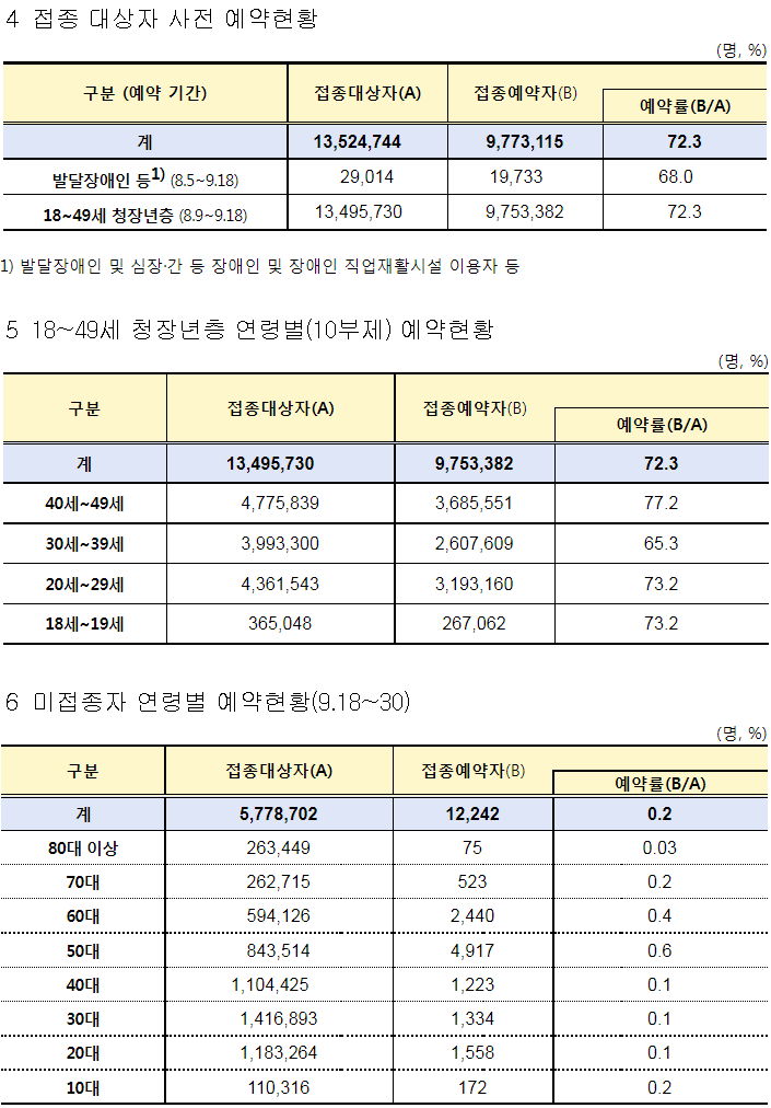 ~9월 18일까지의 18~49세 예방접종 사전예약(이 기간동안 접수해 1차맞은 사람 포함) 집계